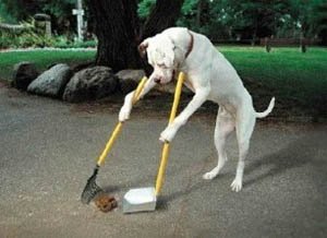 I'm glad that Dad doesn't make me clean up my own poop. See the picture of the poor dog that has to do that. I really don't know how he carries those scoopers. It would sure take the fun out of a walk if I had to drag those around and clean up my own poop. What are humans for anyway if not to pickup your poop?